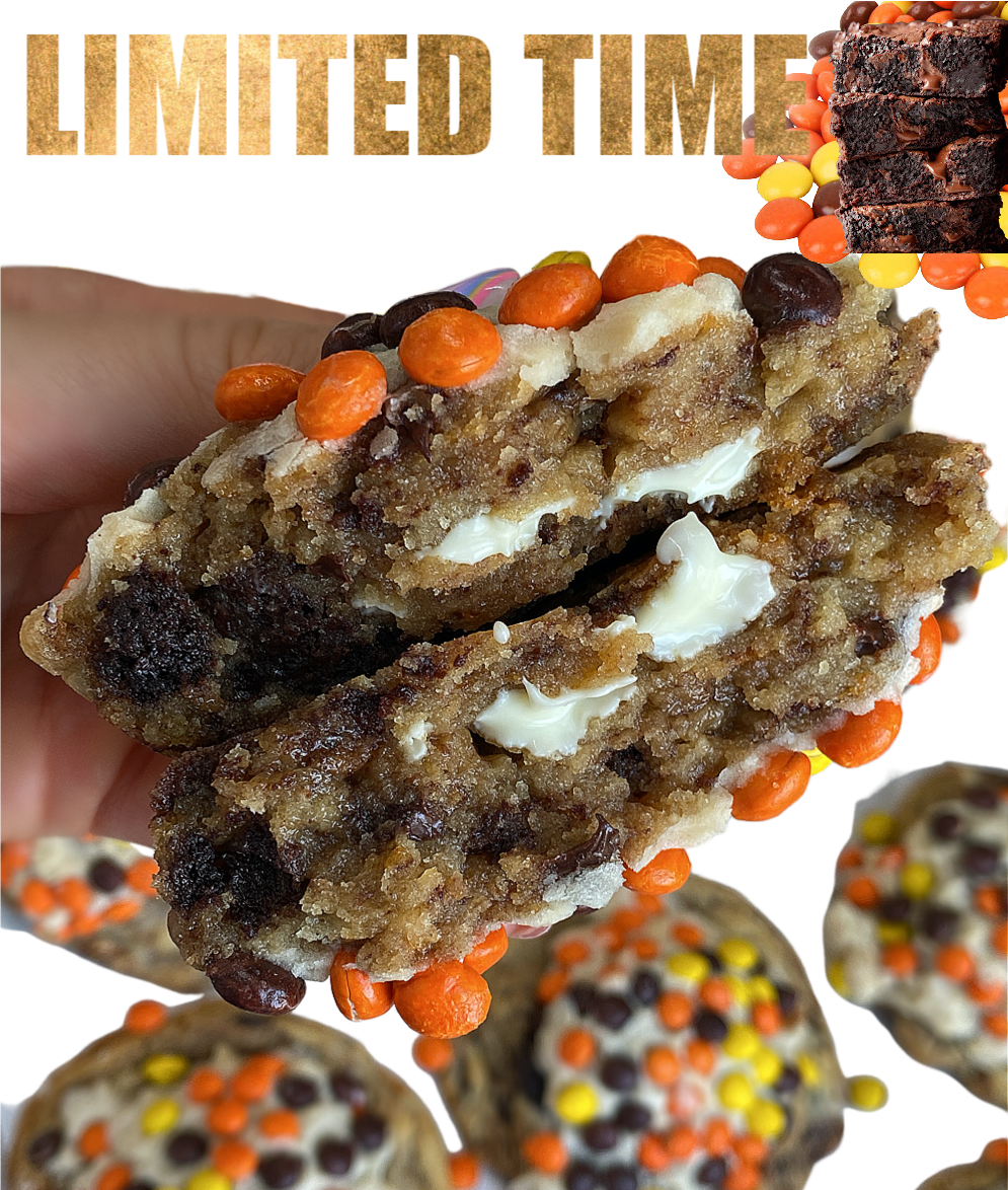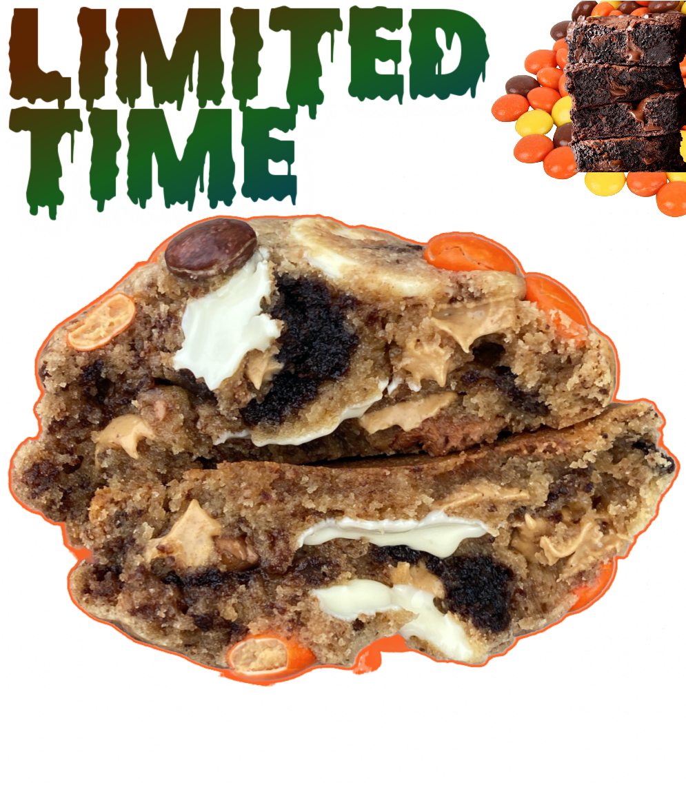 A combination of KyKy's incredible Peanut Butter Kookie and KyKy's Fudge Brownie, with chunks of Belgian white chocolate, Reese's peanut butter chips, Reese's Pieces,.. this Kookie is one of a kind!